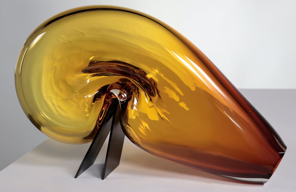 Chromatic Shift V, blown glass, cut and polished, steel, 32 x 21 x 13 cm, 2025, Farnham, image Agata Pec