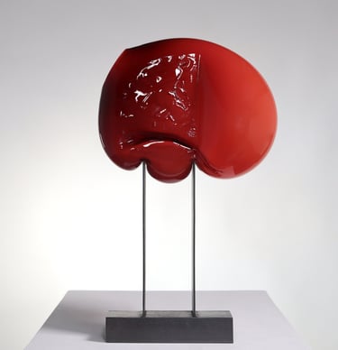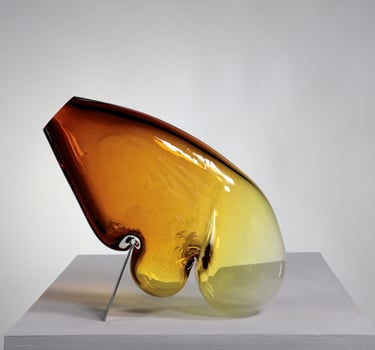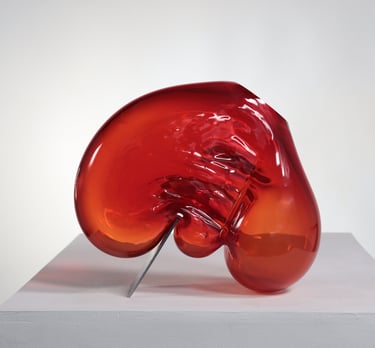 Pulse, blown glass, cut and polished, steel, 43 x 25 x 11 cm, 2025, Farnham