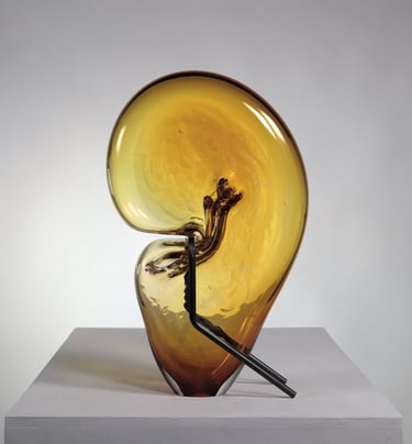 Continuum, blown glass, cut and polished, steel, 25 x 23 x 11 cm, 2025, Farnham